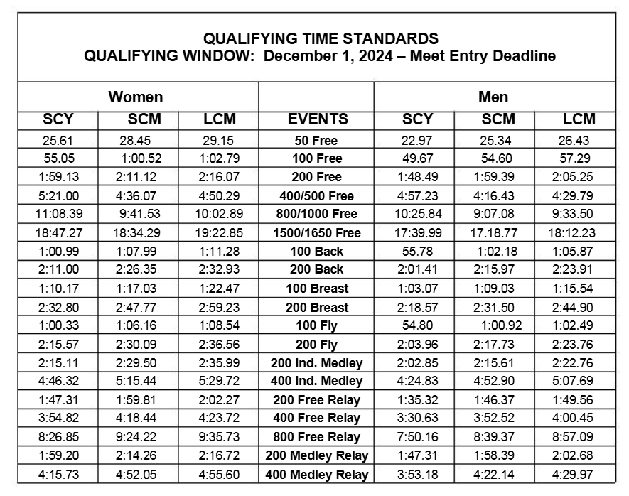 This email is aimed at SRST Senior Level swimmers and high level age groupers who might make the time standards indicated below.